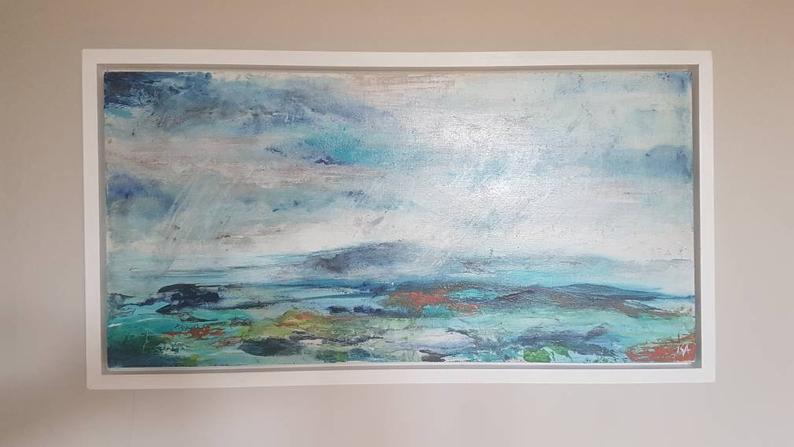 This painting is inspired by travels through the north east of Scotland, in particular the area around Nairn and Culloden. Incoming came about after watching the rain coming in over the Moray Firth.