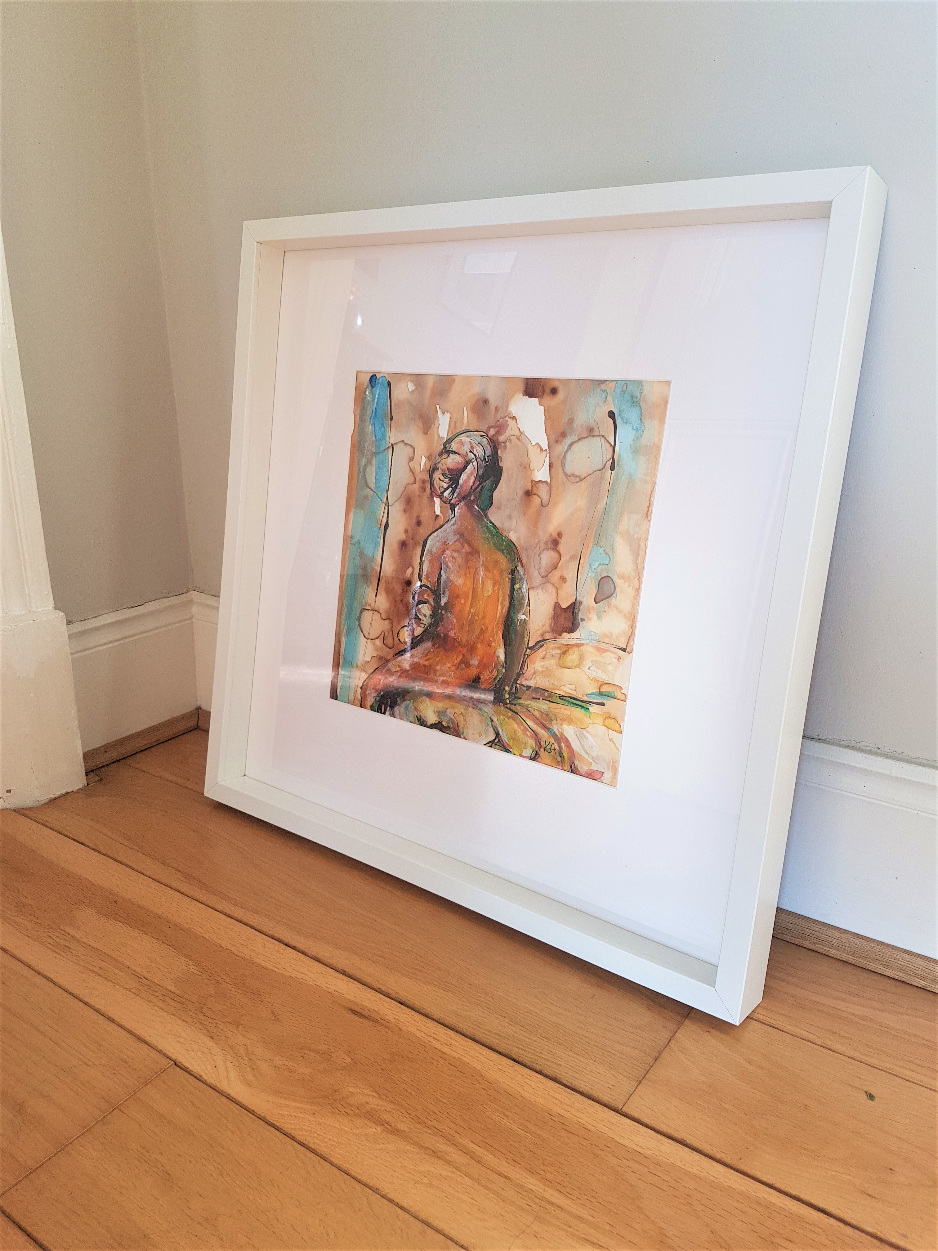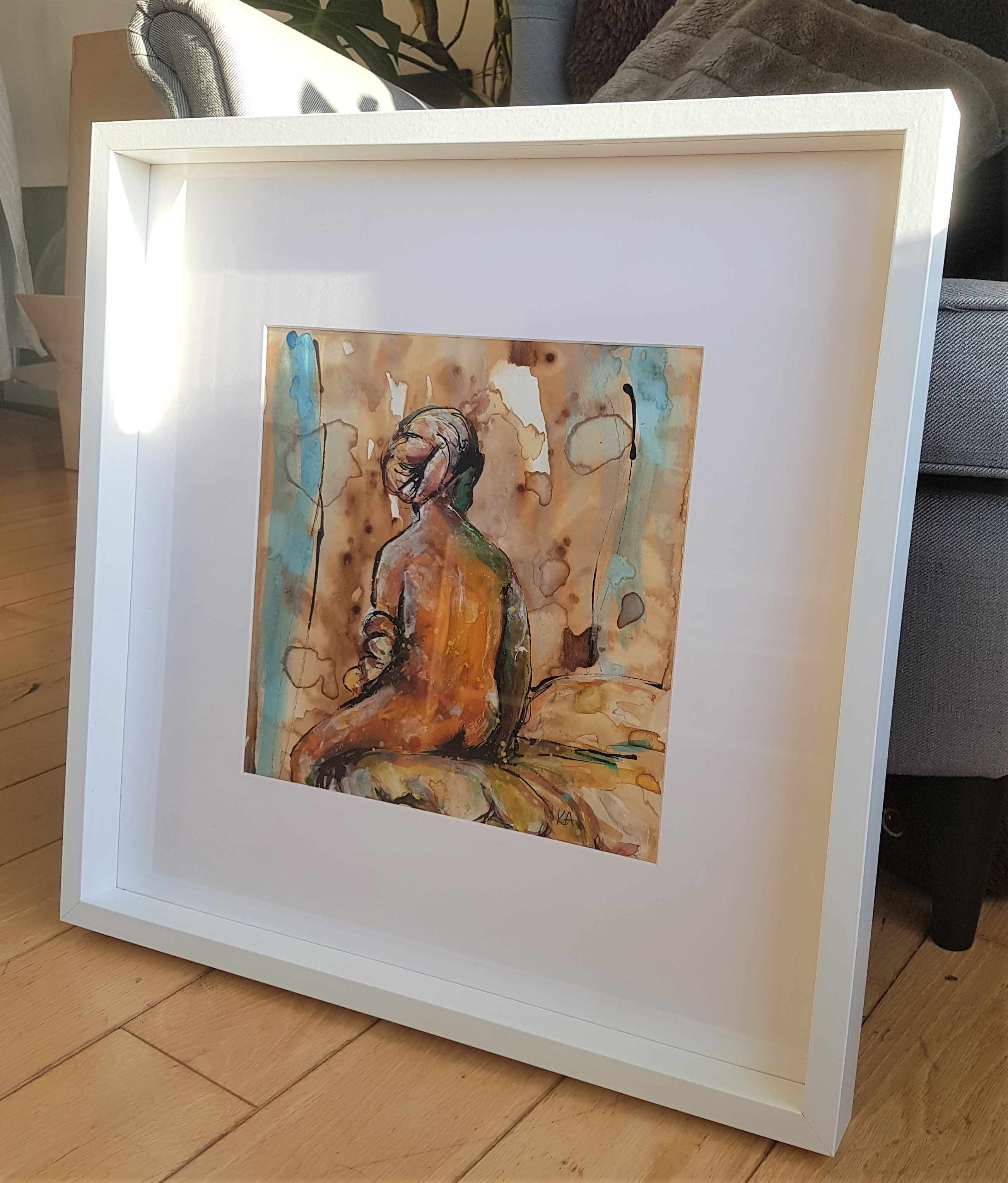 In this vibrant painting I used washes of coffee to create a textured and highly unusual background. This combined with the strong gestural ink marks, creates an intriguing contrast. Coffee is a wonderful medium to work with, creating fabulous marks and textures.