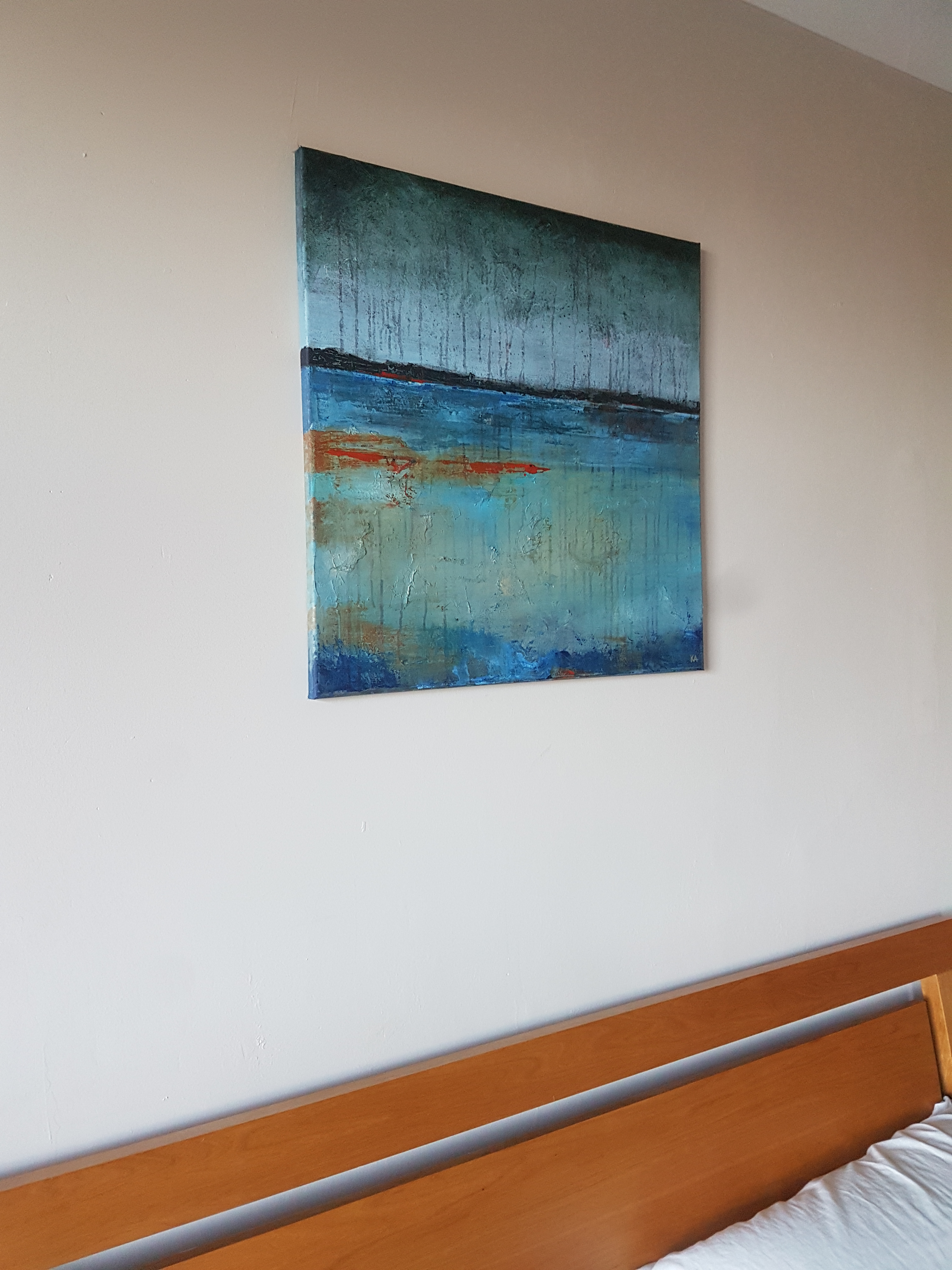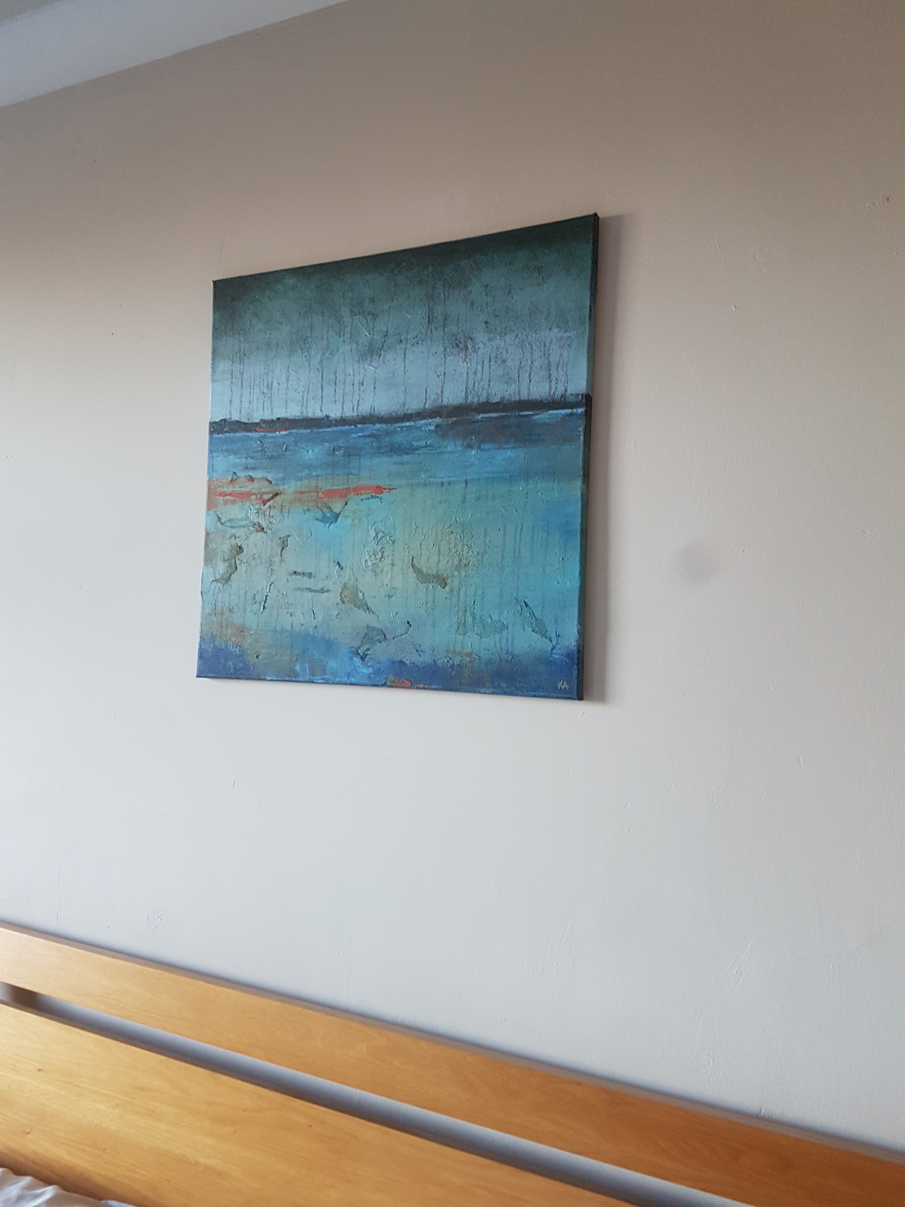 This painting is inspired by the tidal flats around Kirkudbright and in particular “The Dhoon” at Nun Mills Bay.